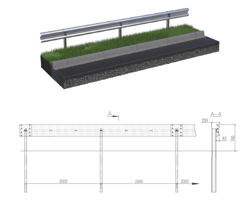 Gutman H2-W4 1225 (11 ДО-280-0,75-2,0-1,1) - дорожнє огородження для безпеки дорожнього руху класу H2 (ДСТУ Б В.2.3-12-2004, ДСТУ EN 1317 та міжнародний стандарт UNI EN ISO 1317) для встановлення вздовж дорожнього полотна на стовпи, вбиті у землю.